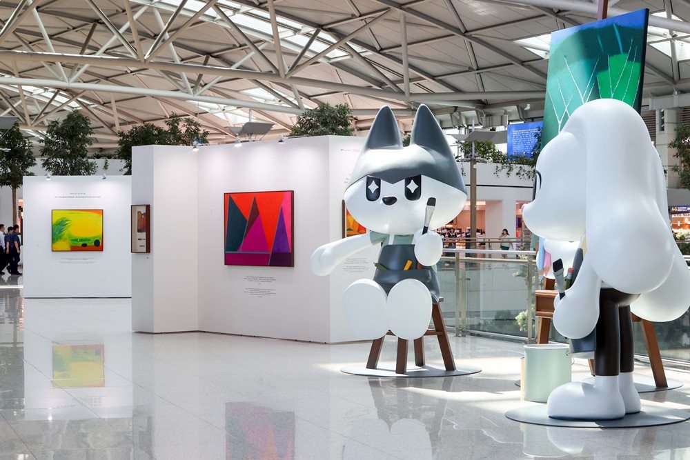 유 화백이 오랜 시간 작업에 사용했던 붓, 팔레트 나이프, 물감 등 작업 도구들은 국가유산수리기능자 ‘모리함’의 전통표구 기법으로 재해석돼, 예술과 기억의 아카이빙을 예술적으로 심화한다. 제1터미널 3층에서는 유영국의 대표작 ‘Work, 1979’를 테마로 한 폴앤바니 포토존은 자연의 고요함과 평온한 미적 체험을 제공하며 관람객의 감성을 자극한다.