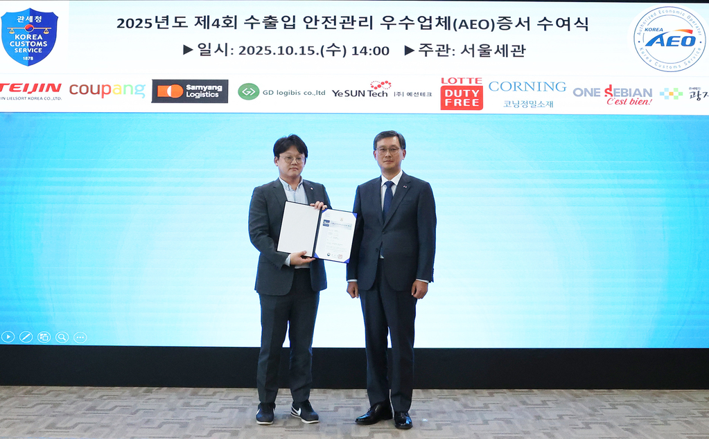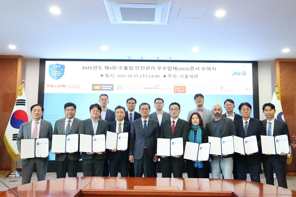 이에 앞서 서울세관(세관장 고석진) 관계자는 15일 “서울세관 대회의실에서 ‘2025년 제3회 관세청 AEO 심의위원회’ 심의를 거쳐 신규 업체 5개(쿠팡주식회사, 테이진리엘소트코리아(주), 삼양로지스틱스(주) 등)와 ㈜호텔롯데, 코닝정밀 주식회사, (유)그룹세브코리아등 15개 업체는 재공인을 받았다”고 밝힌바 있다.