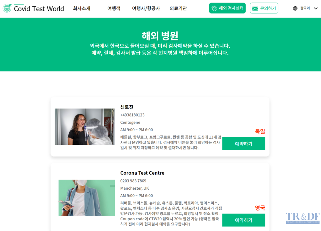 ▲ 사진=코비드테스트월드 홈페이지 해외병원 서비스 예약하기 갈무리(2021.11.01) |