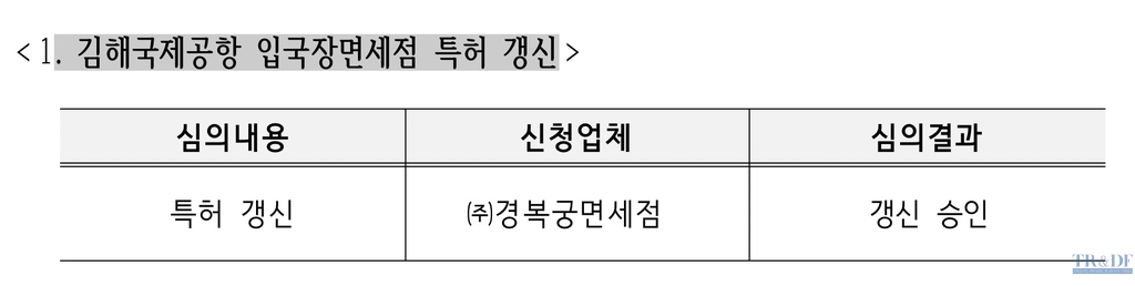 보세판매장 특허심사위원회(위원장 순천향대 정병웅 교수)는 지난 8월 28일 서울 스페이스에이드에서 25년 제4회 특허심사위원회를 개최하고 김해공항 입국장면세점 운영사인 경복궁면세점의 특허갱신을 승인했다.