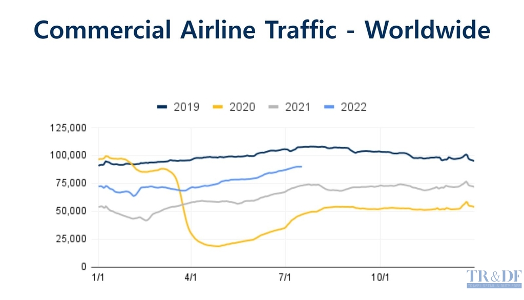▲ 출처=FlightAware 갈무리, https://blog.flightaware.com/aviation-stats-update-07-18-22, 2022.08.12. |