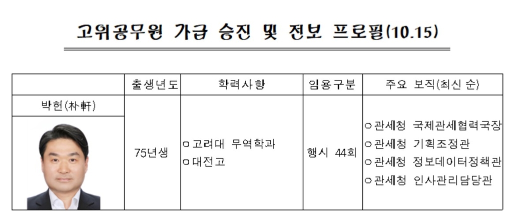 관세청 인천공항세관장 박 헌 (朴軒)