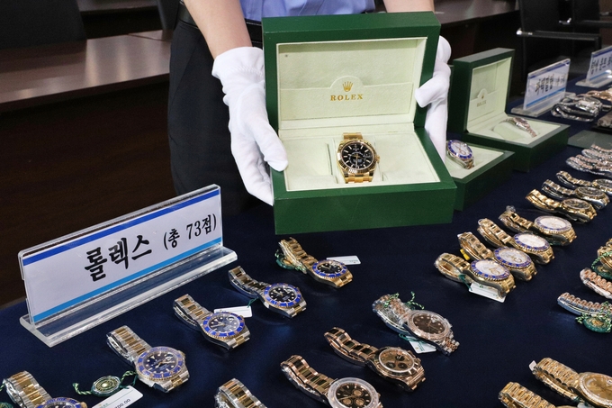 ▲ 사진=인천세관 제공 / 고가시계 롤렉스(총 73점) 밀수 적발 품목(2021.06.17) |