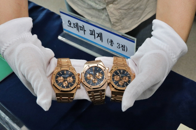 ▲ 사진=인천세관 제공 / 1억4천만 원 상당 오데마피게(총 3점) 밀수 적발 품목(2021.06.17) |