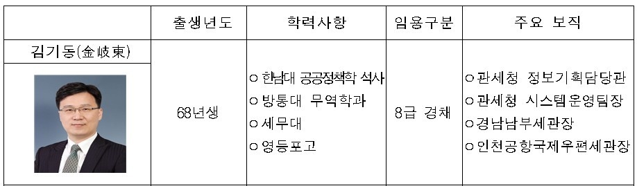 관세청 정보데이터정책관 김 기 동 (金岐東)
