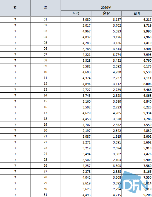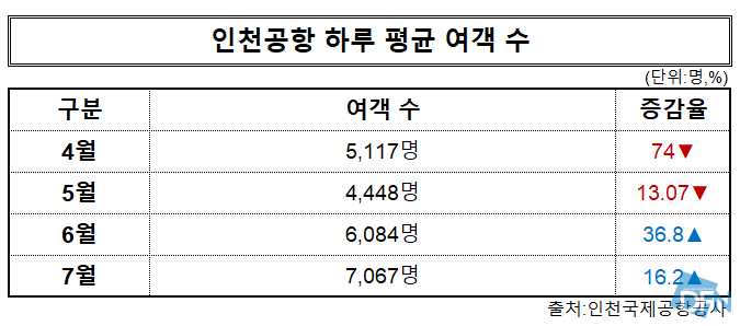 ▲자료=인천국제공항,7월 일자별 여객 현황(2020.08.04) |