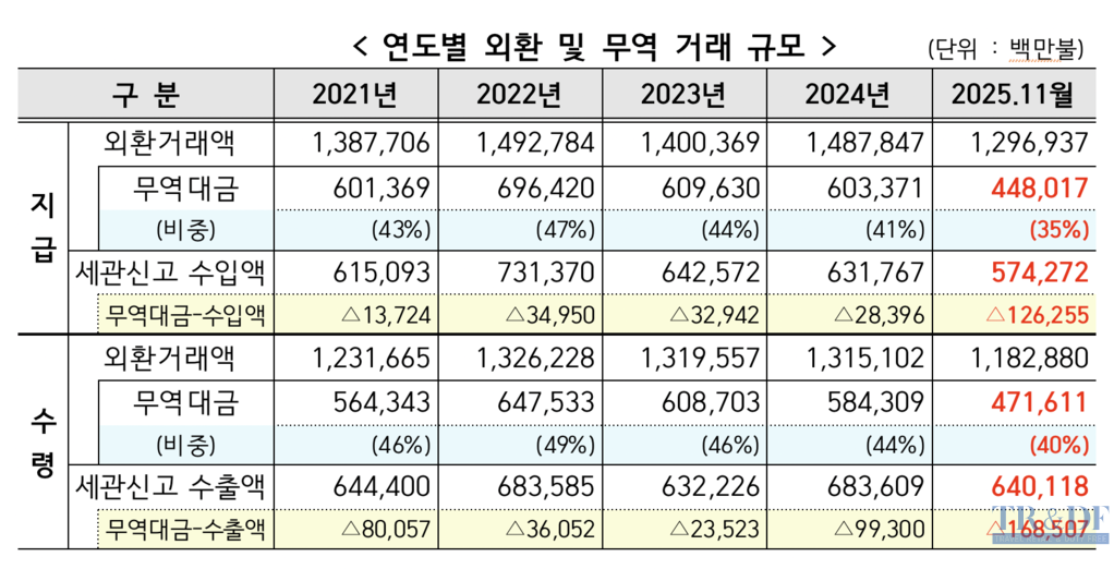 전반적인 무역업계의 외환거래 법규준수도가 낮은 상황에서, 우리나라 총 외화 유입금액에서 무역대금이 40%~50%를 차지하는 만큼, 무역업계의 외환거래 건전성을 집중 점검·단속할 필요성이 커지고 있다는 것이다. 실제로 2025년 11월까지 우리나라에 유입된 외환은 총 1조1,828억 8,000만 불이며, 그 중 무역대금 관련 금액은 4,716억1,100만 불로 총 40%를 차지했다.