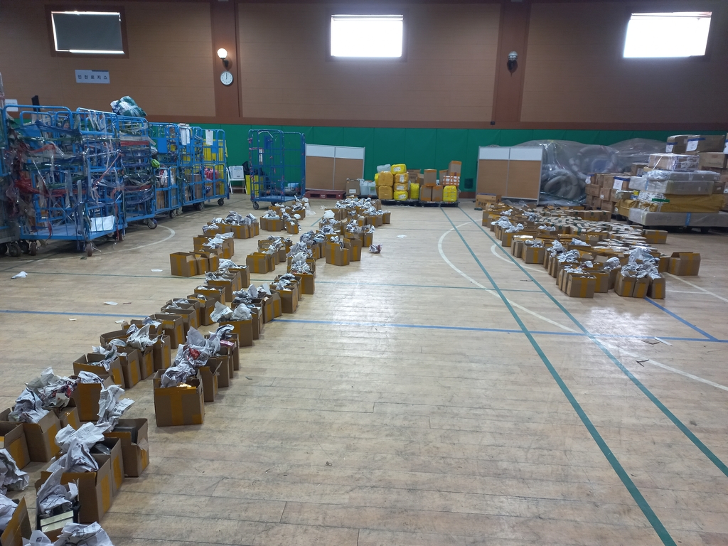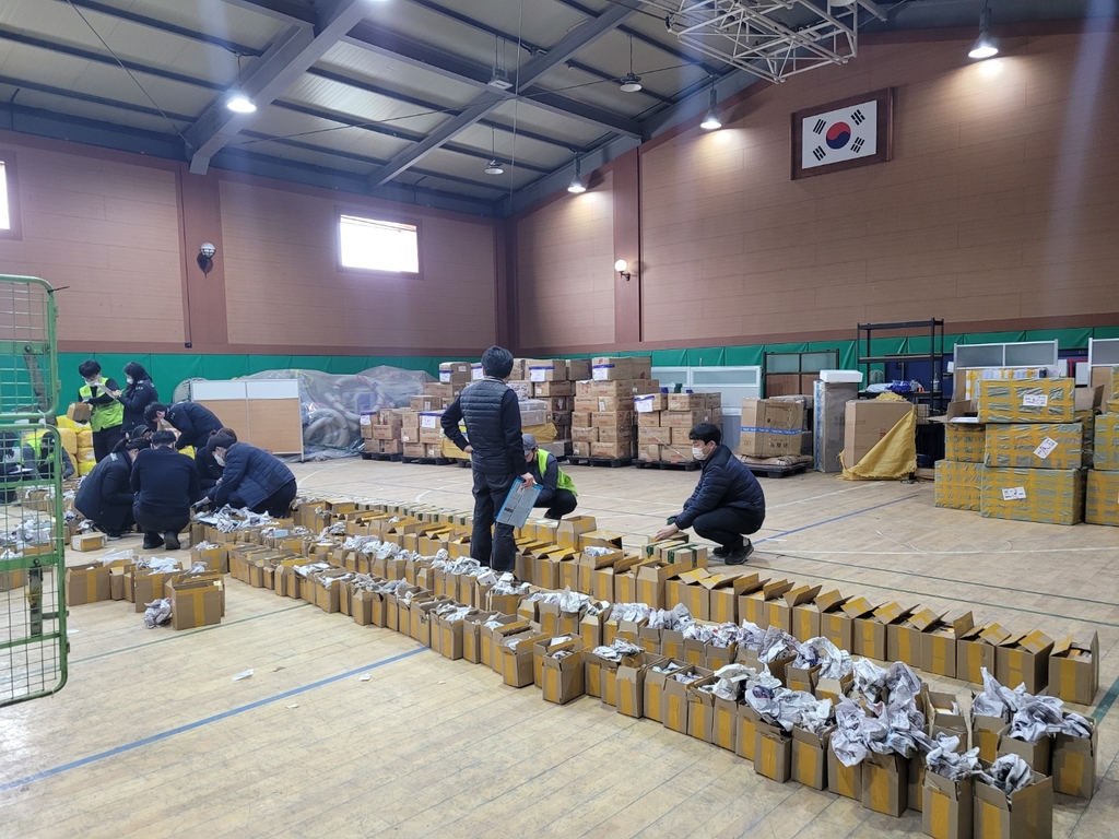 ▲ 사진=인천본부세관 / 특송화물에 대한 개장검사를 실시중인 세관직원(2022.04.20) |