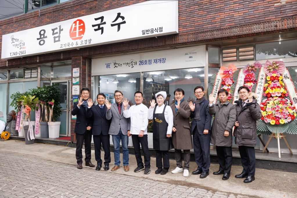 이 날 진행된 재개장식에는 김황국 제주특별자치도의회 부의장, 강동원 제주특별자치도청 도민안전건강실장, JIBS 이용탁 사장, 김경록 제주신라호텔 총지배인, 윤재필 신라면세점 제주점장 등 30여 명이 참석해 재출발하는 26호점 식당주를 축하하고 격려했다.