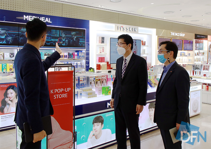 김광호 서울세관장이 21일 롯데면세점 월드타워점 현장을 직접 방문해 ‘라이브방송’이 실시되는 현장과 국산 화장품 매장, 그리고 면세점에 누적된 재고상품을 내국인에게 수입신고 후 판매하고 있는 내수판매 장소 등을 둘러보고 면세업계의 고충을 듣는 자리를 마련했다. 롯데면세점에서는 한국사업본부장인 이종환 전무, 월드타워점 박상호 상무, 월드타워점 영업팀 김정은 팀장 등이 참석했다.