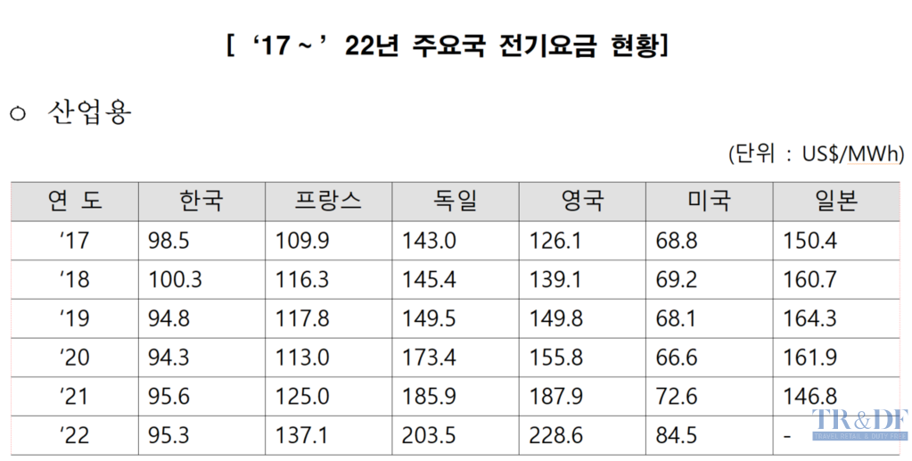 문제는 이번에 제기된 국산 철강 후판에 대한 미국 정부의 상계관세가 적정한 조치냐는 것이다. 진의원은 지난해 국감 질의자료를 통해 미 상무부가 문제 삼는 산업용 국산 전기료가 OECD-IEA 자료를 보더라도 22년 기준 한국의 1메가와트(MWh)당 95.3$ 보다 미국은 오히려 낮은 84.5$로 나타났다고 주장했다. 또 이를 2017년부터 2022년까지 6년간 평균해서 비교해도 한국의 전기료가 미국에 비해 74.2% 수준에 불과한데 미 정부가 한국의 산업용 전기료를 보조금으로 규정해 상계관세를 매기는 것은 문제가 있다는 지적이다.