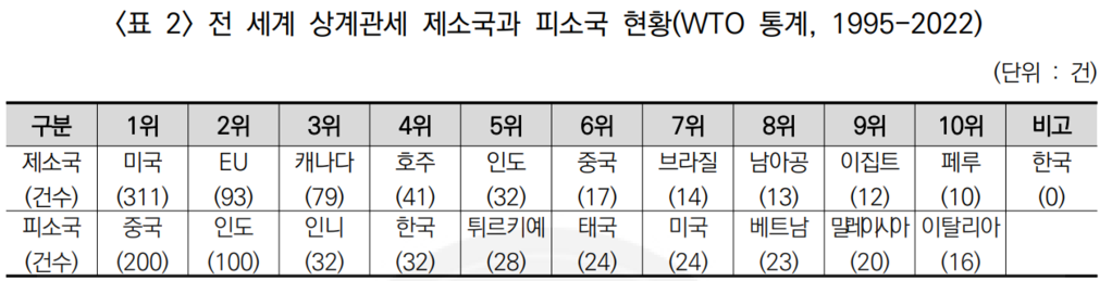 ▲ 출처 : 무역위원회, 對韓 해외 수입규제현황, 무역구제 제82호, 2023, p.76. |