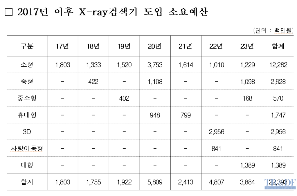 관세청(청장 고광효)의 특송분야 X-Ray 판독 전문 인력이 지난 2017년 15명에서 2023년 82명으로 대폭 증가한 것으로 나타났다. 더불어민주당 진선미(강동구 갑)의원실 관계자는 5일 “국내 전자상거래를 통한 해외직구가 최근 폭발적으로 증가하면서 특송 분야의 관세청 직원도 대폭 증가했고 해외 발송한 우편물을 X-Ray로 검색하는 관세청 직원 역시 17년 8명에서 23년 12명으로 증가했으며 출입국 여행자를 대상으로 하는 X-Ray 검사 직원 역시 17년 152명에서 23년 207명으로 증가했다”고 밝혔다.