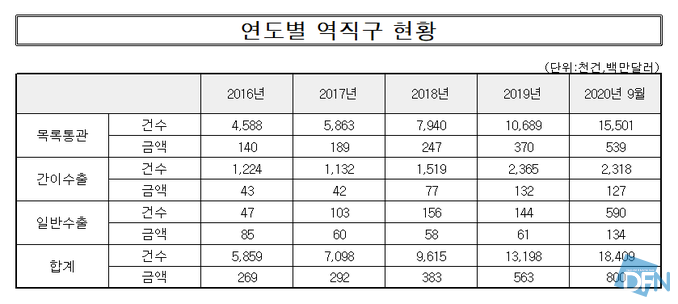▲도표=육해영 기자, 출처=관세청,국회 기획재정위원회 소속 박홍근 의원실 |