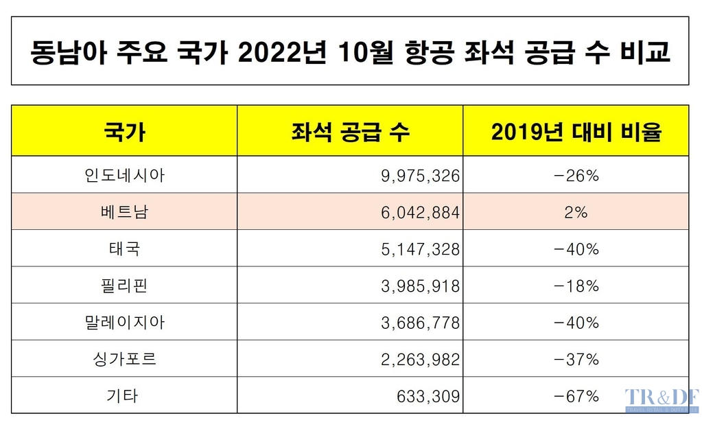▲ 출처=OAG, 안상준 한국면세산업연구원장 재정리, 2022.11.03 |