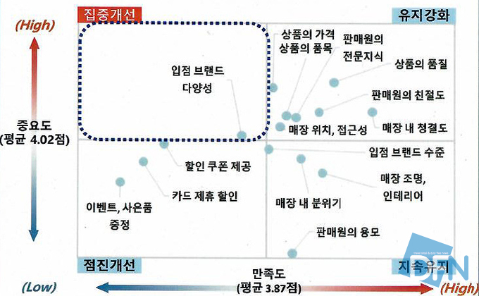 비교적 중요하지만 미충족된 부분으로는 ‘상품가격’을 뽑았다. 시내면세점과 인터넷 면세점의 경우 유지비가 비교적 적게 든다. 반면 공항면세점은 비싼 임대료와 인건비 때문에 같은 면세물품도 더 비쌀 수밖에 없는 상황이다. 공항면세점이 브랜드 다양성과 상품가격 문제를 해결하지 못한다면 다른 면세점 채널에 뒤처질 것으로 보인다. 공항면세점만의 경쟁력을 발전시킬 시점이다.