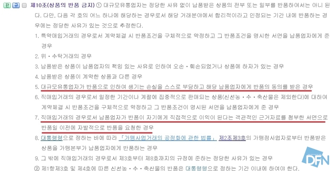 직매입거래에서 반품에 대한 정당한 사유를 인정받으려면 ‘대규모유통업자가 반품으로 인하여 생기는 손실을 스스로 부담하고 해당 납품업자에게 반품의 동의를 받은 경우’ 혹은 ‘납품업자가 반품이 자기에게 직접적으로 이익이 된다는 객관적인 근거자료를 첨부해 반품일 이전에 자발적으로 반품을 요청한 경우’ 등이다.