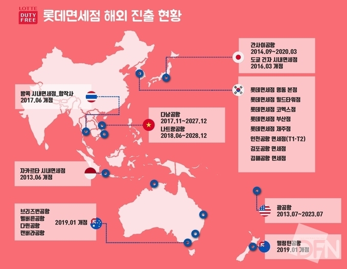 ▲ 인포그래픽=최동원기자 제작 / 롯데면세점 해외진출 현황 |