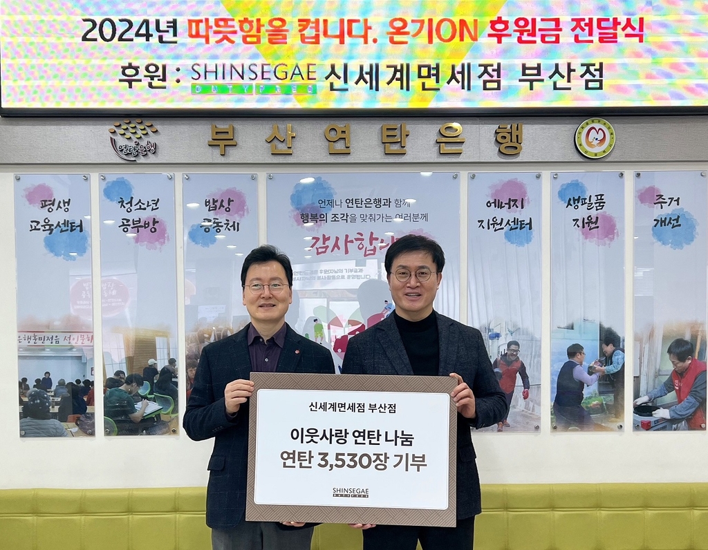 신세계면세점(대표 유신열) 관계자는 31일 “신세계면세점 부산점이 다가오는 설 연휴를 앞두고 취약계층 가정의 따뜻한 겨울나기를 지원하고자 연탄 기부 활동을 진행했다”고 밝혔다. 이날 부산 서구 부산연탄은행에서 진행된 연탄 기탁식에는 신세계면세점 한세경 부산점장과 부산연탄은행 강정칠 대표 등이 참석한 가운데 300만 원 상당의 연탄 약 3500장을 기탁했다.