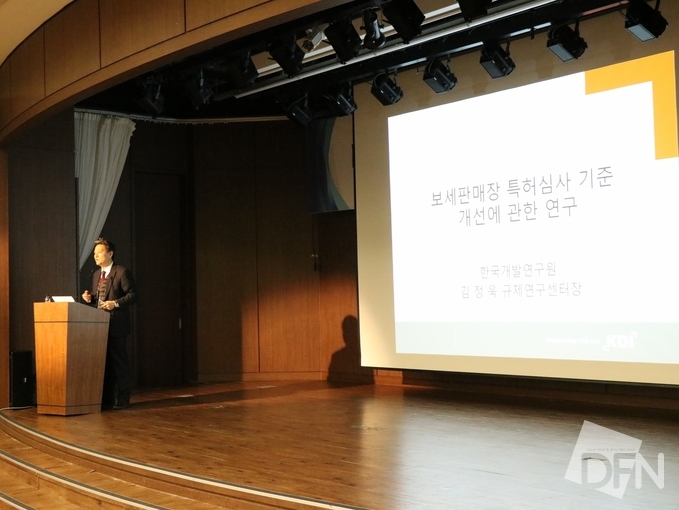 ▲사진=김일균 기자/ 보세판매장 특허심사 기준 개선에 관한 연구를 발표하고 있는 김정욱 KDI 규제연구센터장 |
