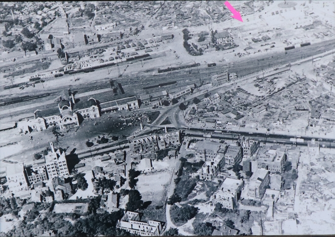 ▲사진=휴전 직후 서울역과 서울세관 항공사진(1954년 촬영)창고 등 보세구역은 소실돼 지붕 없는 폐허 모습이다 |