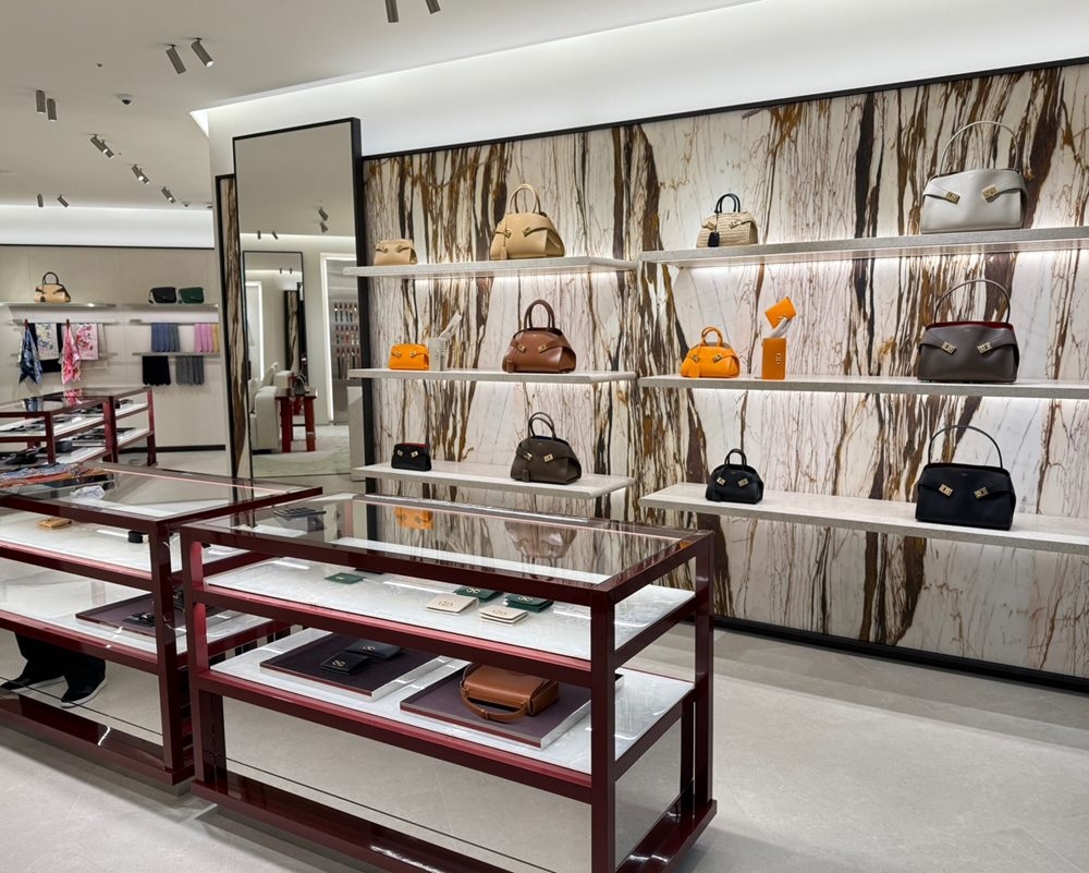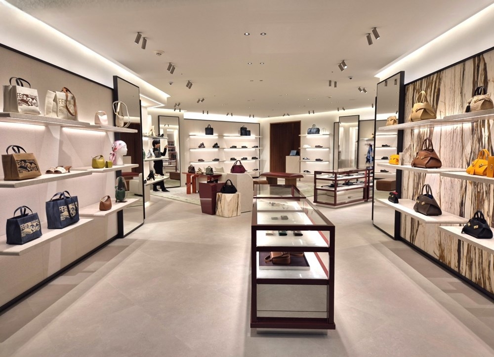 신세계면세점이 새롭게 선보이는 페라가모 부티크는 따뜻한 컬러 톤과 대리석 패널로 마감된 세련된 인테리어가 특징이다. 정제된 미학을 강조하는 페라가모만의 디자인 철학이 공간 곳곳에 녹아들어 세심하면서도 편안한 쇼핑 환경을 제공한다.