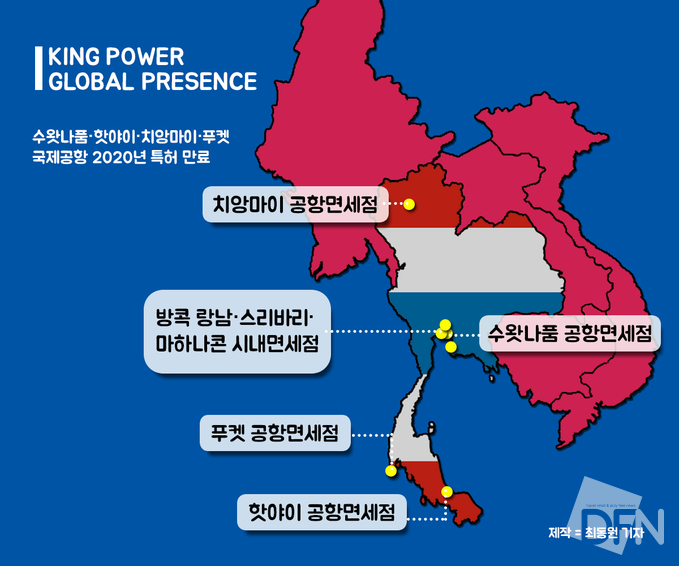 '킹파워 인터내셔널(이하 킹파워)'은 태국 면세시장의 절대 강자로 자국 국제공항 특허에 대해 독점력을 행사하며 절대 강자로 군림하고 있다. 매출 규모에서 세계 8위를 차지하는 태국 면세 시장의 사실상 최고 사업자로 자처하지만 해외 시장에서는 그리 큰 힘을 쓰지 못하는 대표적인 '안방불패' 사업자다.