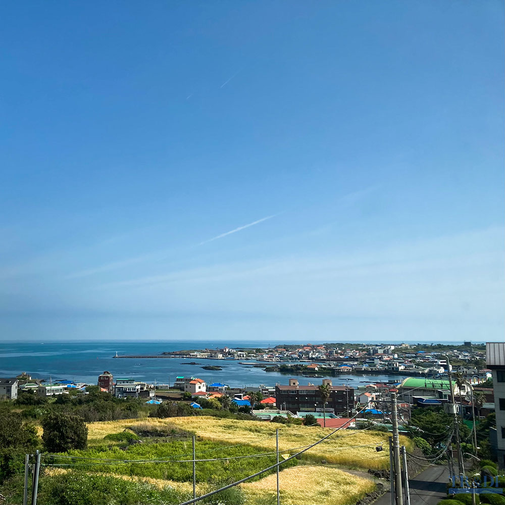 아침에 일어나서 침대 옆 작은 테이블에 앉아 일을 했다. 일하다 잠깐 고개를 돌리면 펼쳐지는 파란 제주 바다. 바다가 햇빛을 받아 반짝거렸다.