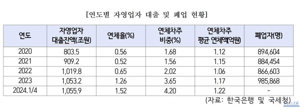 임 의원은 “2020년 코로나19 발생 당시 1% 미만을 유지했던 기준금리는 2022년부터 지속 상승해 23년도부터 현재까지 18개월 이상 3.50%로 동결된 상태”로 “고금리 장기화가 지속되면서 자영업자의 채무 연체율 등이 가파르게 상승하고 있고 지난달 발표된 한국은행 금융안정보고서에 따르면, 최근 자영업자대출 연체율은 2021년 0.52%에서 2024년 1/4분기 1.52%로 3배가량 증가했다. 폐업자 또한 금리 인상 이후 2022년 대비 2023년도에는 13.8%가 증가하는 등 자영업자의 경영 환경이 갈수록 악화되고 있다”고 주장했다.