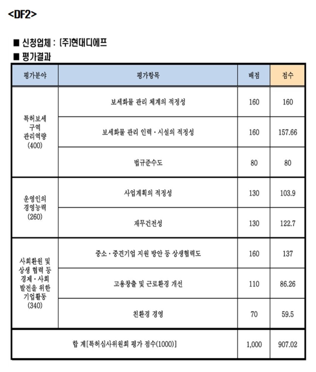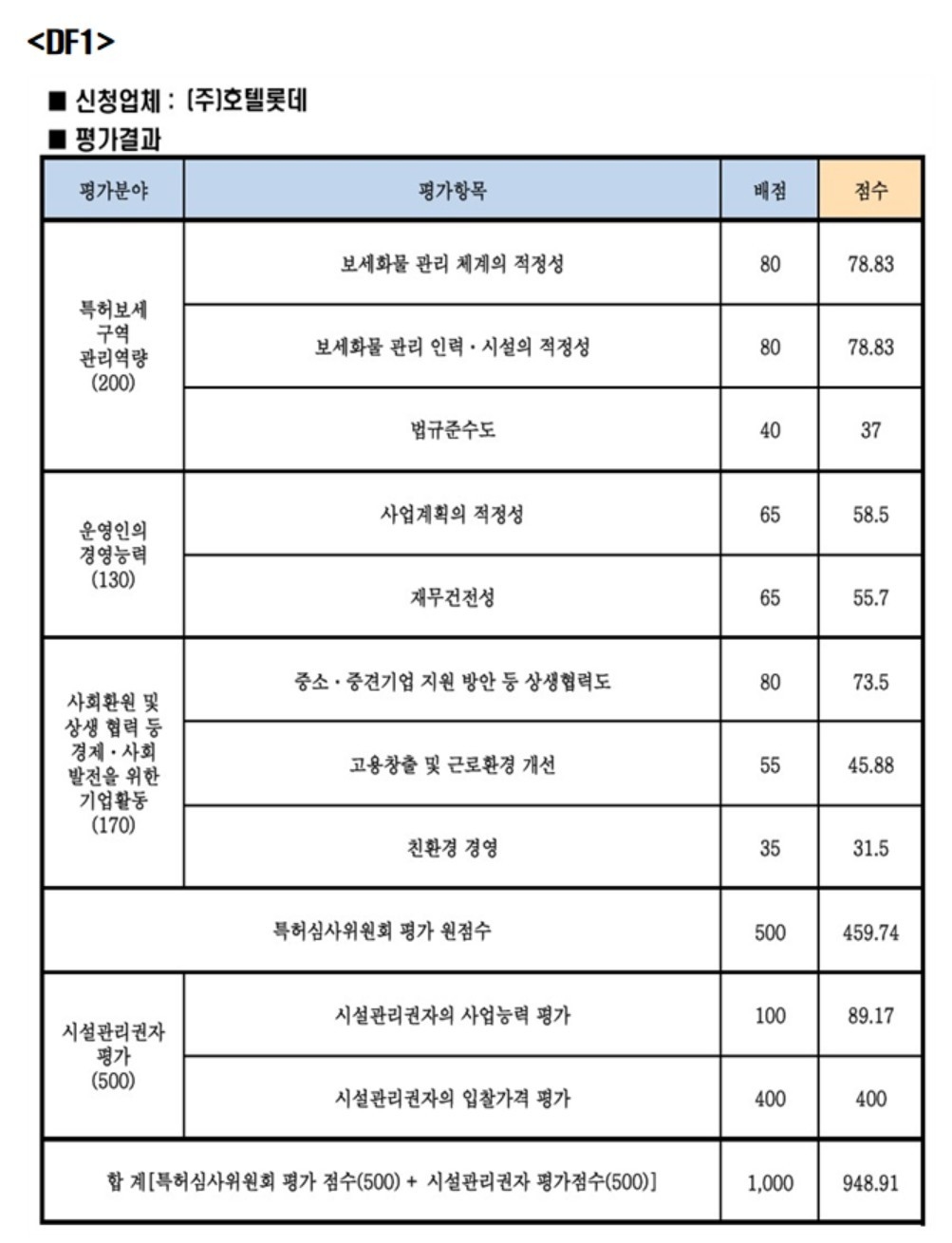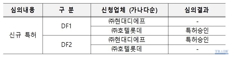 그 결과 각 영역별 복수사업자로 선정된 두 업체간 심의 결과 DF1에는 롯데면세점을 그리고 DF2에는 현대백화점을 각각 신규 특허사업자로 선정했다. 롯데면세점과 현대면세점은 각각 2033년 6월 30일까지 약 7년간 인천공항에서 면세점 사업을 영위할 수 있게 됐다.