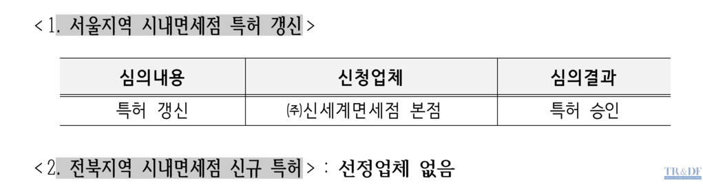 보세판매장특허심사위원회(위원장 박영태 동의대 교수, 이하 특허위원회)는 20일 오후 6시에 “2026년 제1회 보세판매장 특허심사위원회 결과를 발표하면서 서울시내 면세점 신세계면세점의 특허 갱신을 허용해 향후 5년간 특허기간이 연장 됐고 전북 지역 시내면세점 특허심사 결과는 선정업체가 없다”고 발표했다.